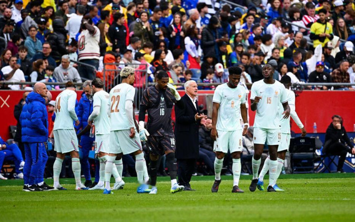 在昨晚的这场友谊赛的第22分钟和第67分钟,比赛暂时被叫停,球员来到场边补充水分。对此德尚非常不满。